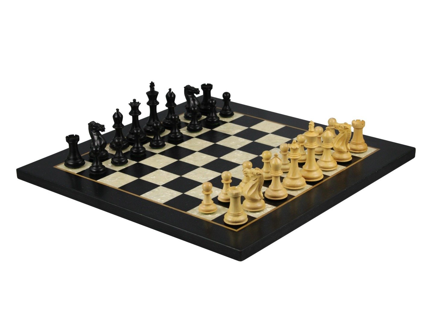 Ebony Chess Set 20 Inch With Helena Mother of Pearl Flat Board and Weighted Ebonised Executive Staunton Chess Pieces 3.75 Inch