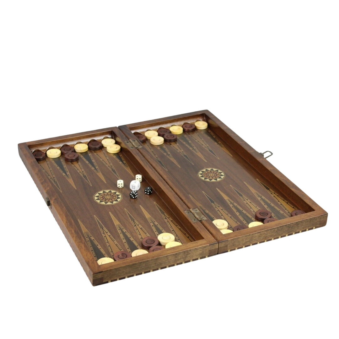 The 19-inch walnut backgammon board is absolutely stunning