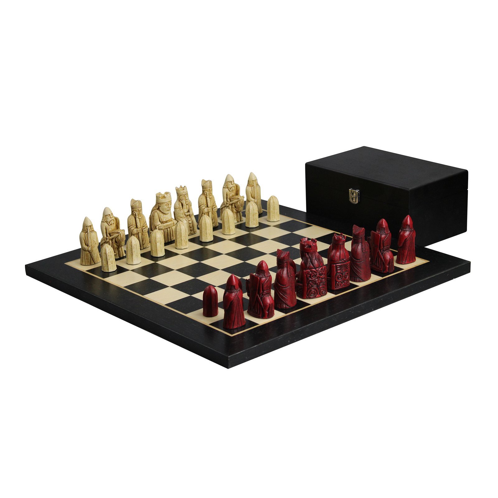 Isle of Lewis Chess Set With II Ivory & Red Resin Chess Pieces 3.5 Inch and Charcoal Black Chess Board 20 Inch