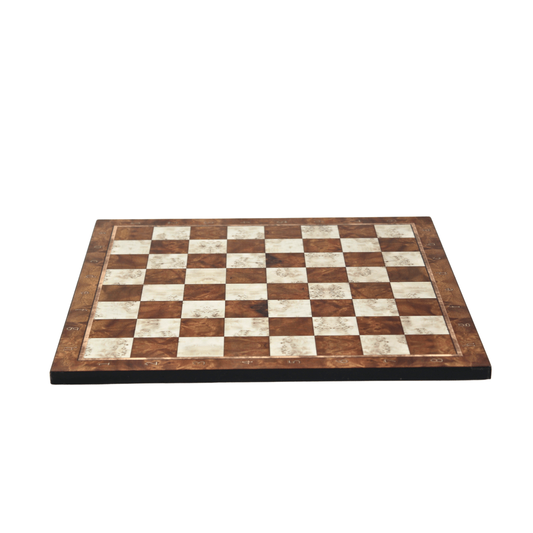 Introducing our Mocha Chess Set, meticulously crafted with durability and elegance in mind. Constructed using 12mm first-quality MDF Boards, our chess boards maintain a rigid shape and form, ensuring long-lasting enjoyment of your games. To elevate your playing experience, the playing surfaces are coated with High Glossy (95%) Acrylic UV Cured Varnish. This varnish is non-yellowing, solvent-free, odorless, and vapor-free, providing a smooth and durable finish that enhances the beauty of the board. The sides of the boards are adorned with High Gloss PVC Edge Band, adding a touch of sophistication and protecting the edges from wear and tear. For stability during intense matches, four self-stick non-slip pads are applied underneath the boards, preventing any unwanted movement while you strategize your next move. Experience the perfect blend of quality, style, and functionality with our Chess Board, designed to be your faithful companion through countless games of skill and strategy.
