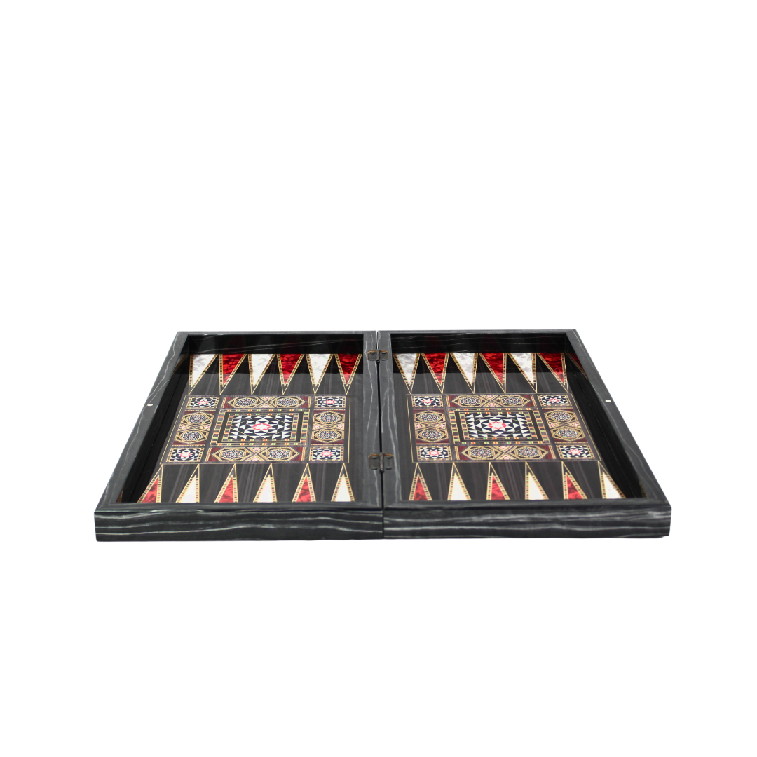 For our Classic Mother of Pearl Chess & Backgammon sets, we prioritize both quality and durability in their construction. The main frames are crafted from 12mm and 4mm First Quality MDF Boards, ensuring they maintain their rigid shape and form over time.Following profiling into various forms and measurements, the MDF parts undergo a wrapping phase with PU glue. The wrapping includes wood-decorated or plain colored alkorcell foils, consistent with the specific product types, enhancing their aesthetic appeal.The inner and outer playing surfaces are treated with a High Glossy (95%) Acrylic UV Cured Varnish. This coating is non-yellowing and free from solvents, smells, and vapors, ensuring a pristine and durable finish.To secure the set, we’ve replaced traditional metal clips with high-grade Neodymium Magnets, offering a reliable closure.Additionally, our sets offer optional accessories such as plastic, acrylic, and polyester chips, larger dices, doubling cubes, and dice cups, depending on the specific product models. With these features, our Classic Chess & Backgammon sets provide a timeless combination of elegance and functionality for an enjoyable gaming experience.